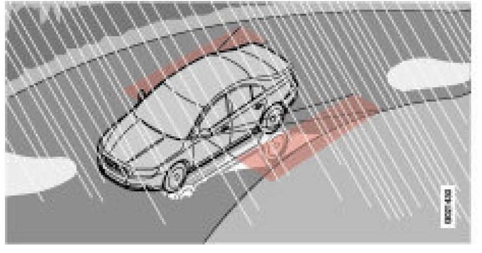 In darkness the system reacts to the headlamps of surrounding vehicles. If the headlamps of surrounding vehicles are not switched on then the system does not detect the vehicles. This means for example that the system does not react to a trailer without headlamps which is towed behind another vehicle