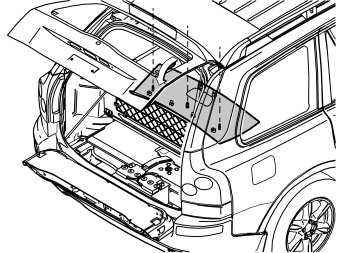 - Reinstall the three screws in the mountings above the rear side windows. Tighten the screws. Tighten to 50 Nm (37 lbf.ft.)