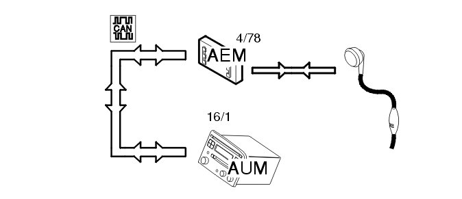 The accessory electronic module (AEM) (4/78) then sends a signal to the audio control module (AUM) (16/1) via the CAN-net.