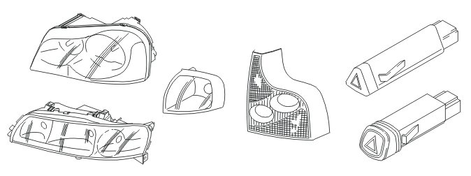 There are a number of lamps positioned around the car to mark its position. These are in the headlamps and tail lamps. The lamps light together with the license plate lighting when the light switch module (LSM) is in parking lamp mode or low beam is on.