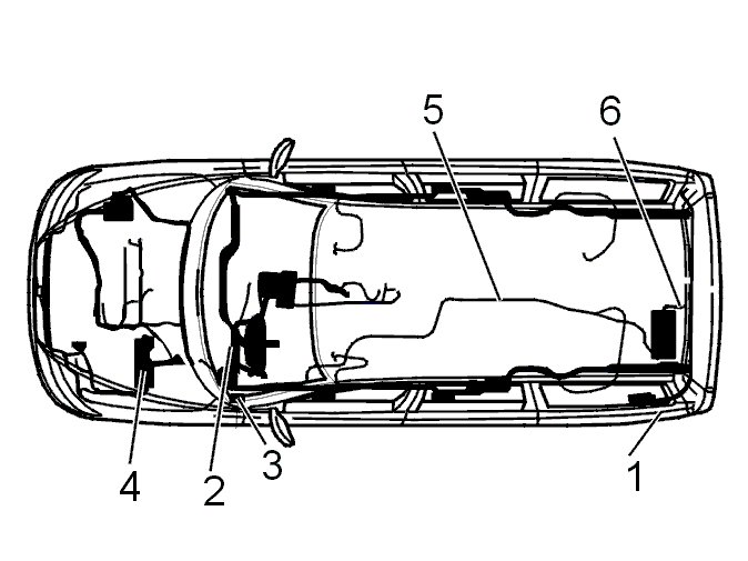 1. Integrated relay / fusebox in the cargo compartment, rear electronic module