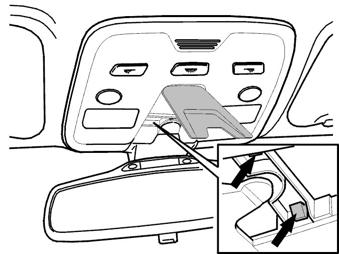 - Remove the cover over the connector for the rear view mirror and control module.