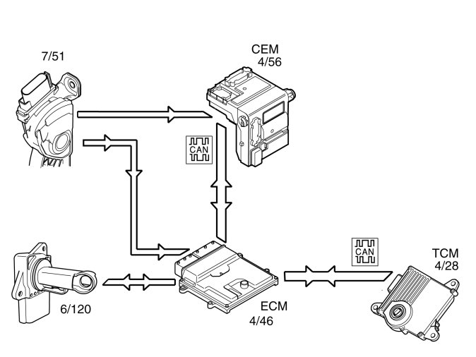 The climate control module (CCM) transmits information to the engine control module (ECM), which determines what must be prioritized. For example, the air conditioning (A/C) compressor in certain extreme cases is switched off completely, regardless of the climate control module (CCM) request. This is to prevent negative engine performance and to protect the air conditioning (A/C) system. As well as the information from the climate control module (CCM), the engine control module (ECM) controls the air conditioning (A/C) compressor based on the information from:
