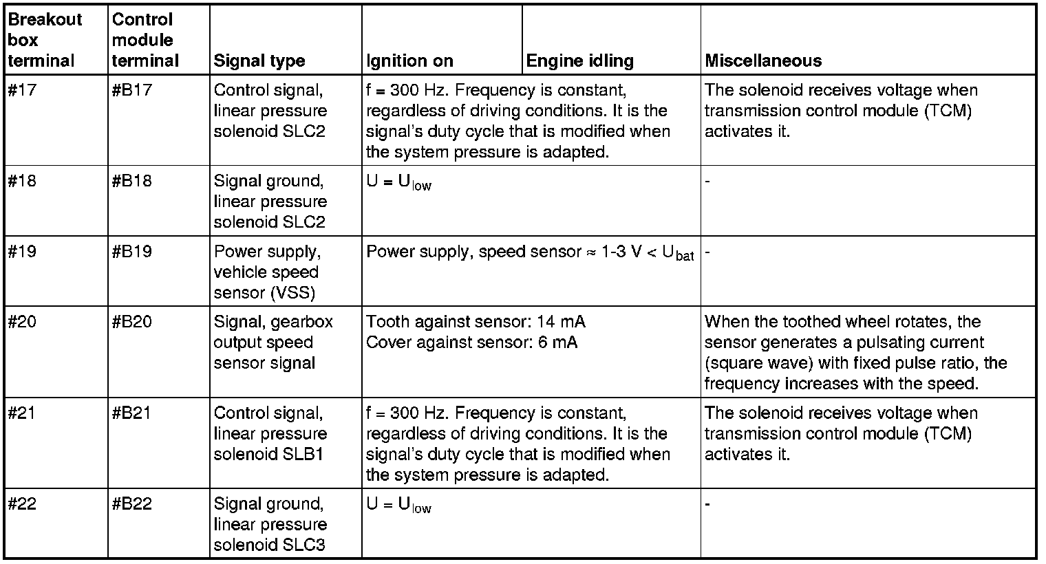 Connector B (22-pin to transmission) corresponds to #1 - #22 on the breakout box.