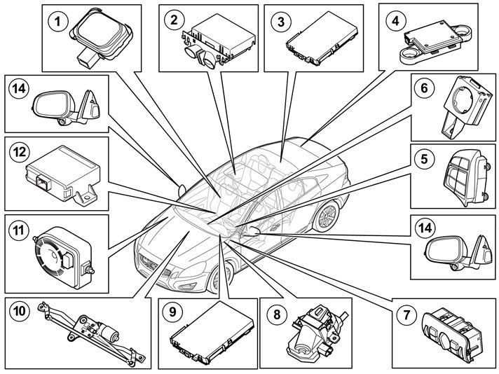 (In XC60 the Remote Receiver Module (RRX) is located in the centre of the headlining over the backseat)