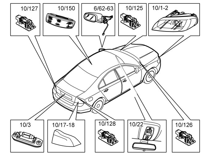 For further information about the interior lighting, see Design and Function, central electronic module (CEM).