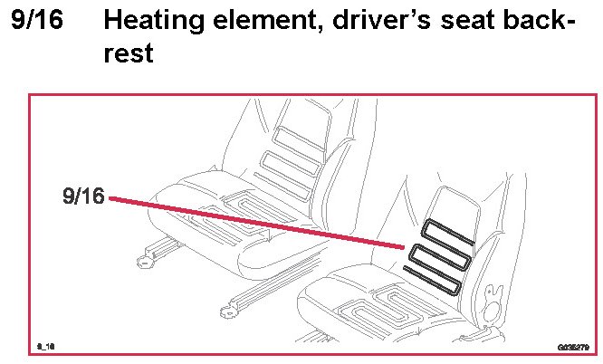 9/16 Heating element, driver's seat backrest