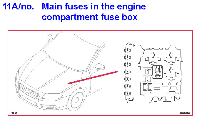 11A/No. Main Fuses In the Engine Compartment Fuse Box