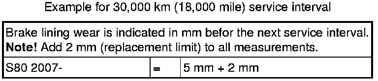 Note! Brake lining measured in situ in brake calliper.