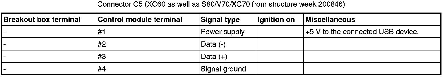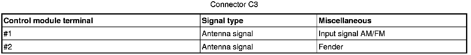 Signal description, Integrated Audio Module (IAM)GeneralAll values below are measured between the relevant terminal in column 1 and C2-8 in column 2 (power ground) unless otherwise stated in parenthesis after the table entry.