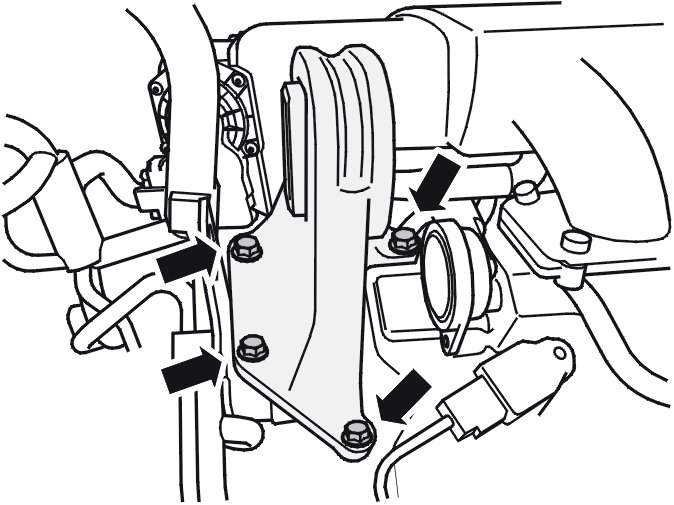 Install the upper engine mount. Tighten the 4 M10 screws.
