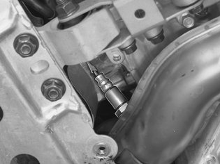 Unplug the connector of the front heated oxygen sensor from above. Remove the oxygen sensor using 999 5543 SOCKET NV-22 HO2S 999 5543 Socket NV-22 HO2S.