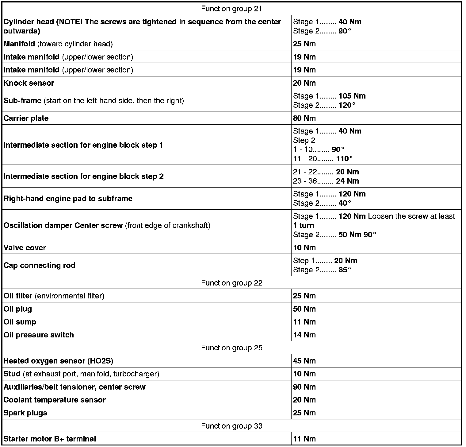 Always use new screws and nuts when angle tightening. Any exceptions to this rule will be indicated in the method.