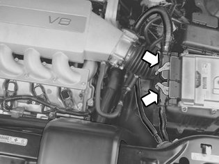 - the 2 connectors from the engine control module (ECM); clip the band clamp to the cable harness