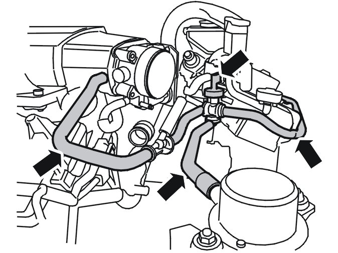 - the coolant hose on the throttle body; secure with the clamp.