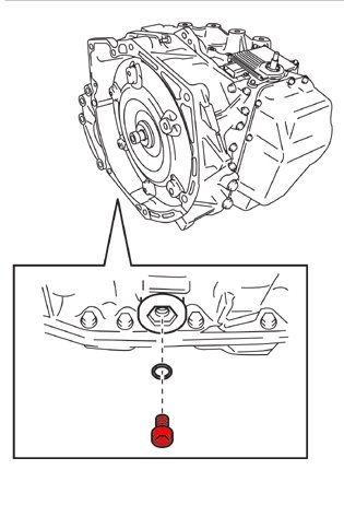 When the fluid is between 50 °C and 60 °C, check that the transmission fluid has stopped running out and is only dropping from the level plug hole.