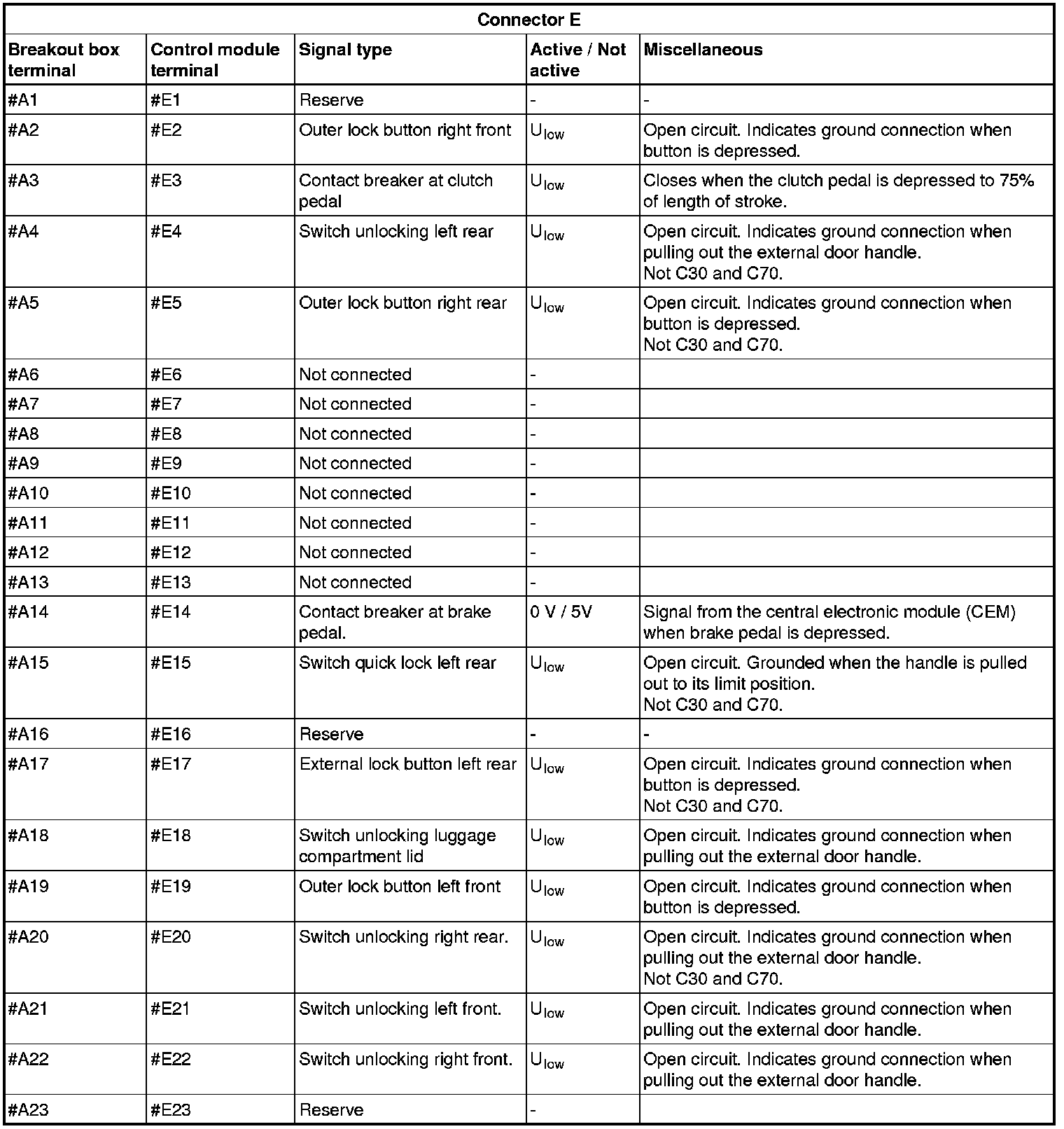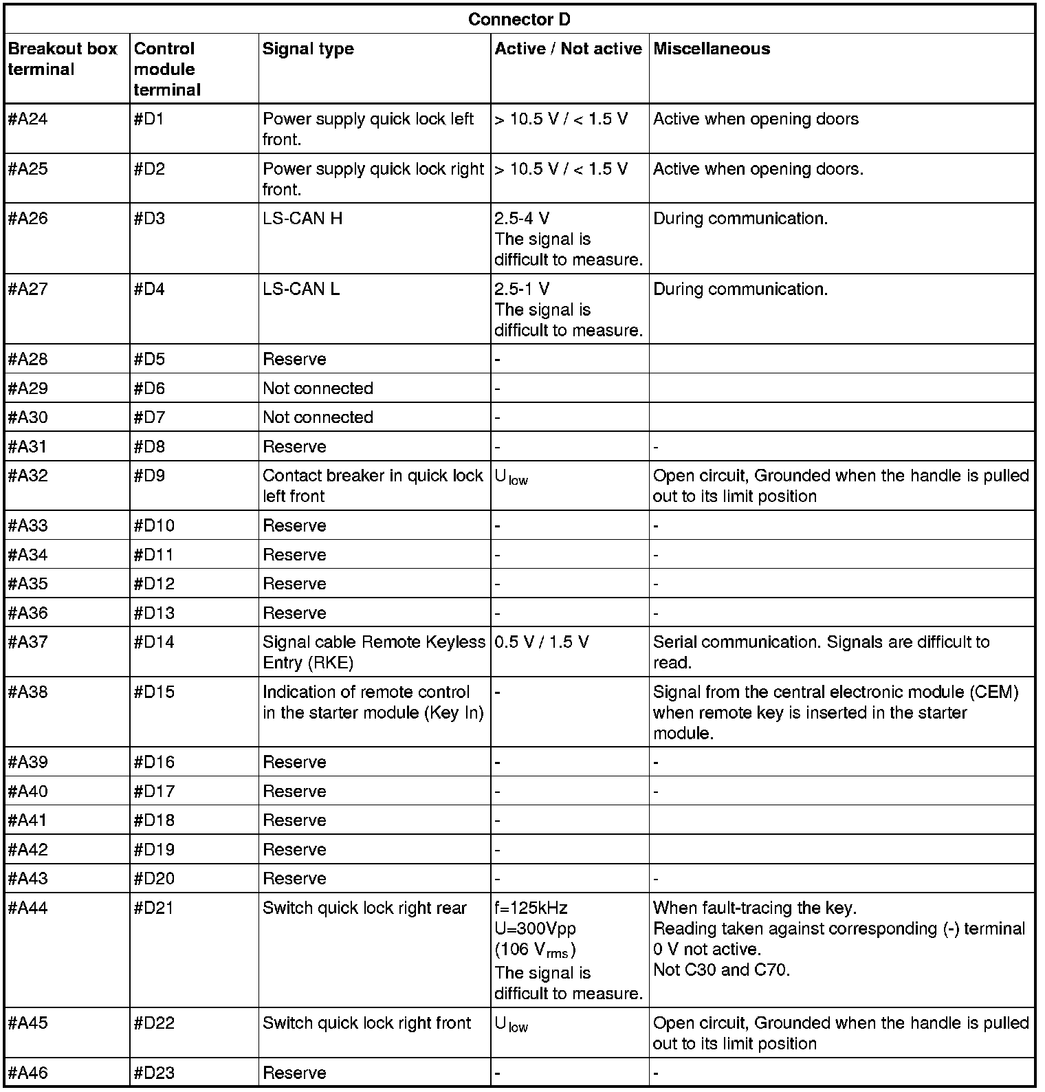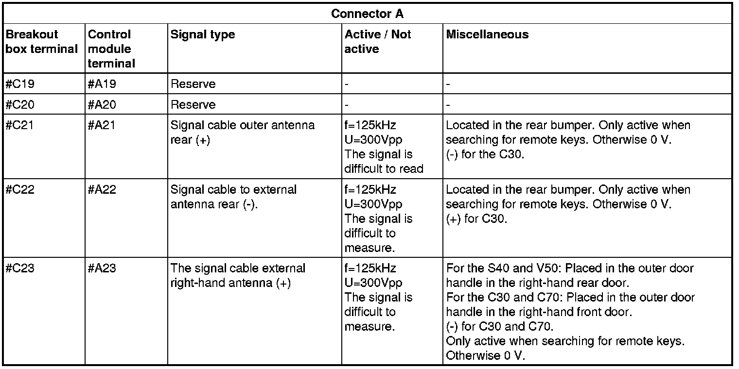 Signal specification, keyless vehicle module (KVM)