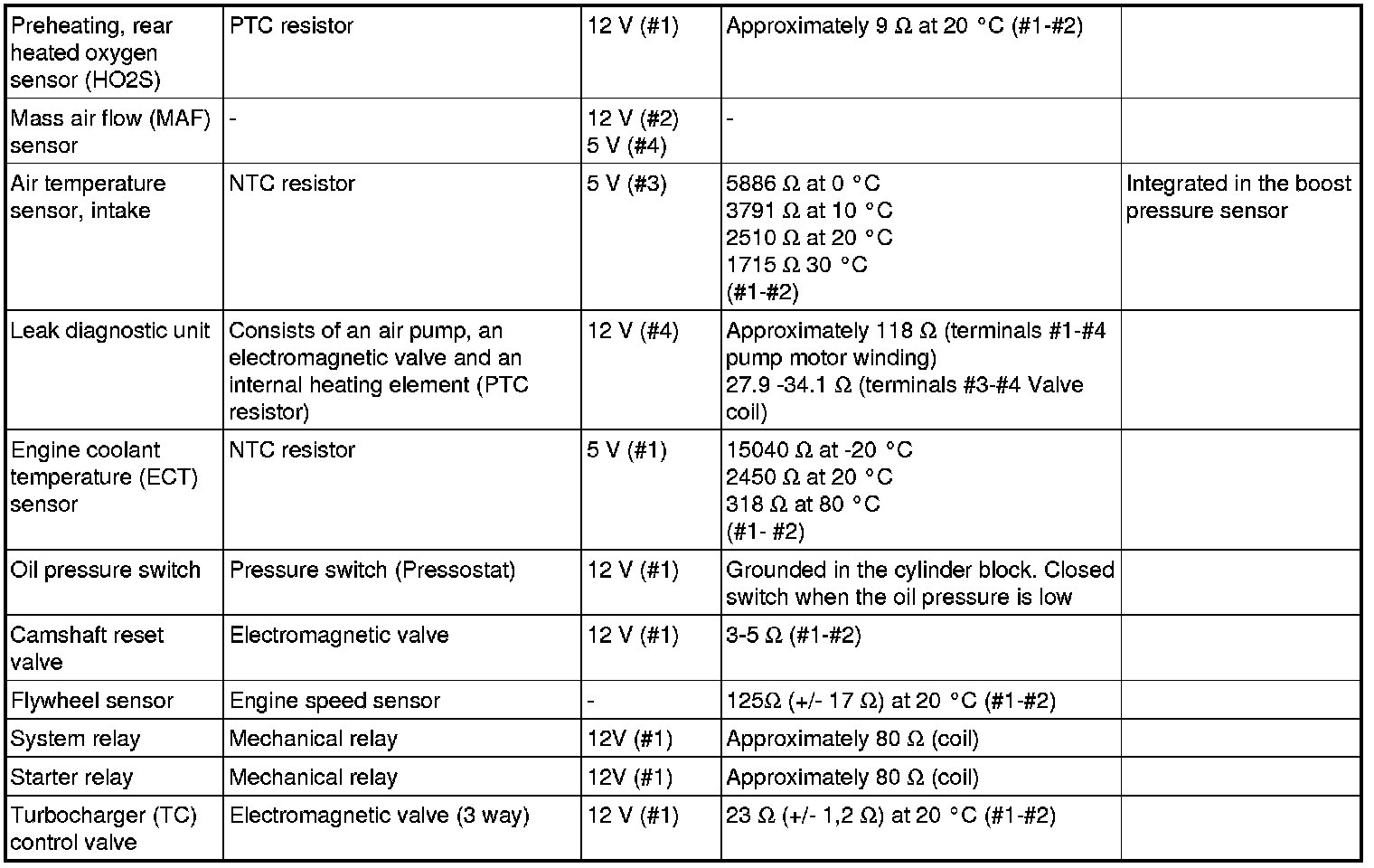 The component specification gives the value of the component when the connector is disconnected. Where no value is given, it is not possible to measure a relevant value at the component.