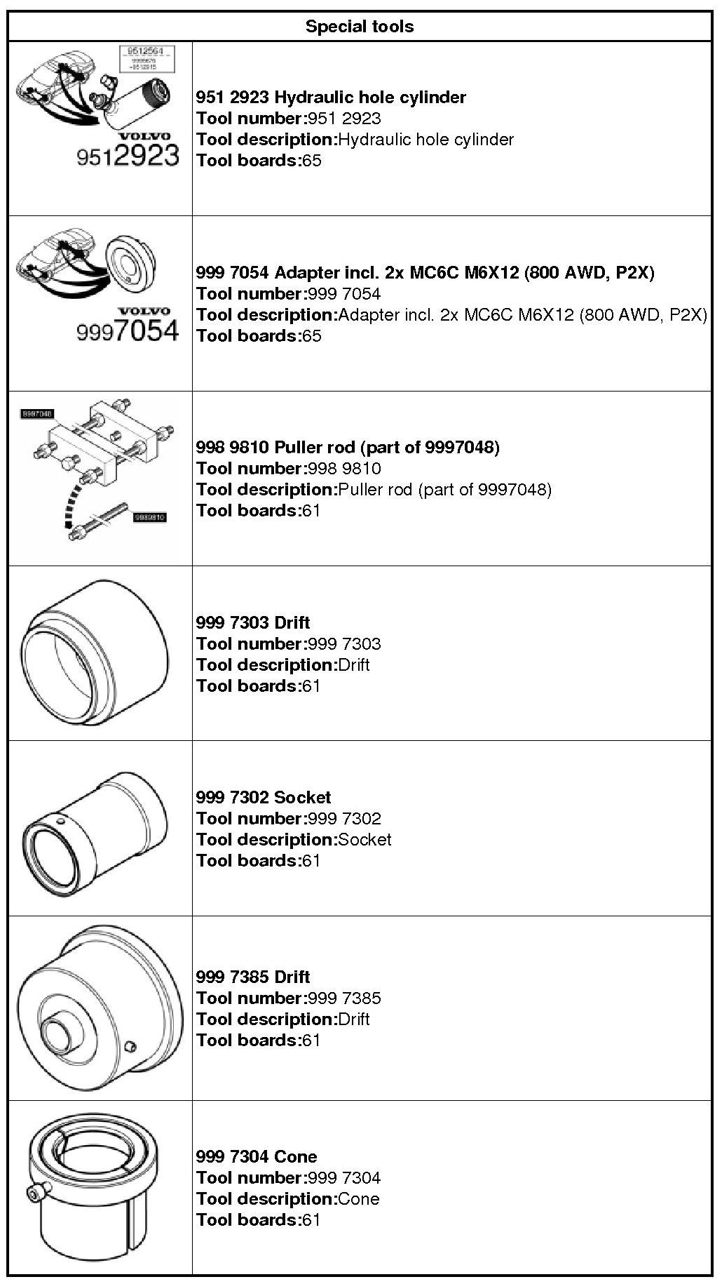 951 2923 Hydraulic hole cylinder 951 2923 Hydraulic Hole Cylinder 999 7054 Adapter incl. 2x MC6C M6X12 999 7054 Adapter Incl. 2x MC6C M6X12 998 9810 Towbar 998 9810 Towbar 999 7303 Drift 999 7303 Drift 999 7302 Socket 999 7302 Socket