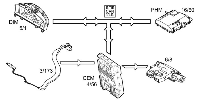 A diagnostic trouble code (DTC) is stored in the central electronic module (CEM) if the indication from the lock motors is incorrect or missing, or if deactivation or activation fails. A message is also shown in the driver information module (DIM).