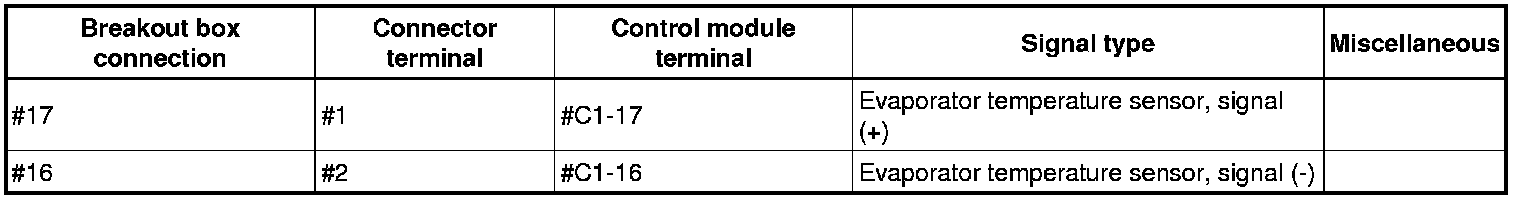 The evaporator temperature sensor sends the current evaporator temperature to the engine control module (ECM) via the climate control module (CCM). The engine control module (ECM) then determines whether the compressor should be started.