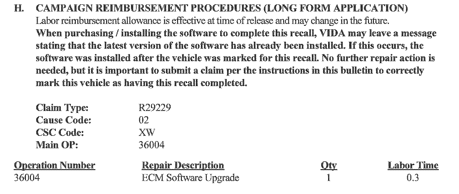 ^ Inquire in VRC2 - Vehicle Warranty where the message "RECALL 243 ECM - Software Upgrade for Fuel Pump (R29229)" appear for eligible vehicles.