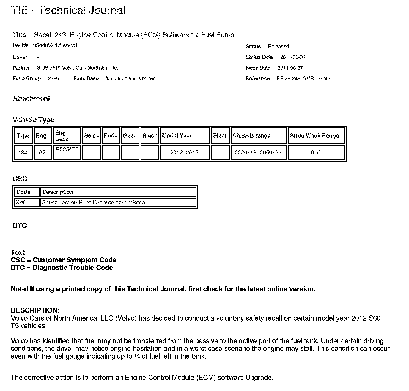 Recall - ECM Update For Fuel Pump Function/Stalling