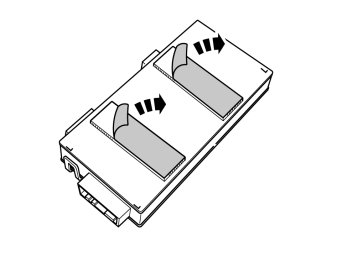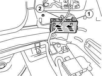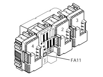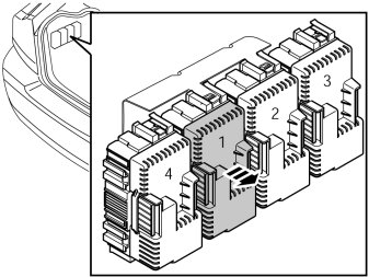 - Press in the catches on the black cover on module 1 in fuse holder and remove it.