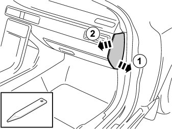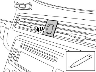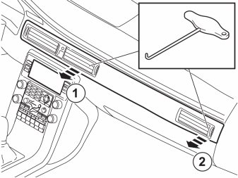 - Insert special tool, 999591946 in the joint between the loudspeaker grille and the dashboard approximately as illustrated, until it engages.