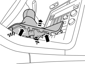 - Remove the edge clip with cable from the lower section of the center console.