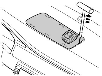 - Twist the tool 90° so that the bent section engages with the underneath of the loudspeaker grille.