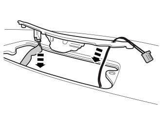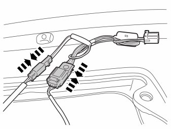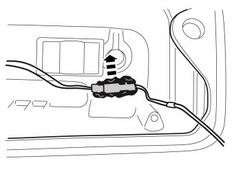 - Take the loudspeaker grille with GPS holder and connect the routed connector.