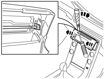 - Press in the catch at one of the panel's upper corners. Use a small screwdriver. Carefully pry off the radio panel on the same side. Use a plastic weatherstrip tool.