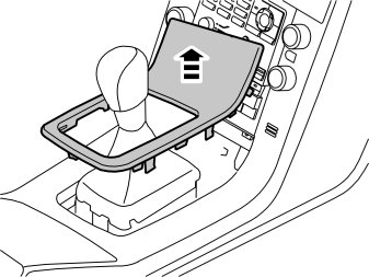 - Remove the gear lever panel from the boot. First press in the four catches around the panel. Then pull the panel up. On certain car models there is a keypad at the front edge of the panel. If this is the case, remove the connector on the right-hand side in the center console to be able to remove the panel.
