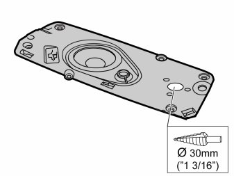 - Take the loudspeaker and drill out the large hole in the bracket. Ensure that swarf does not get trapped in the loudspeaker.