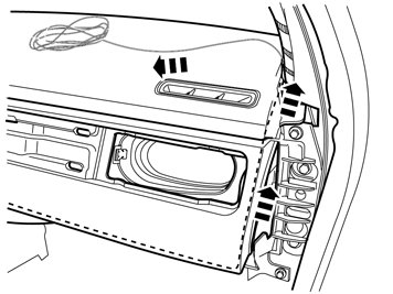- Pull upwards until the loudspeaker grille detaches, it is secured with six clips. If necessary, move the tool closer to the clips to facilitate the removal.