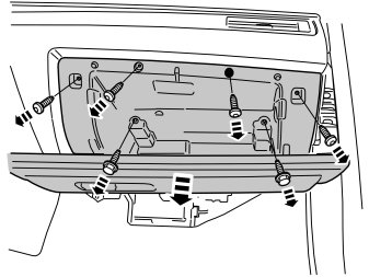 - Remove the covers and screws at the rear edge of the upper panel section of the center console. First remove the screws on the rear of the panel and then remove the remaining screws on the top, ten in total.