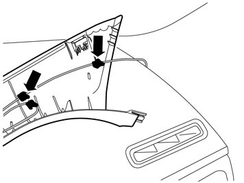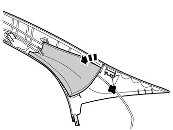 - Secure the antenna cable and the excess on the reverse of the A post panel using pieces of butyl tape.