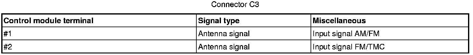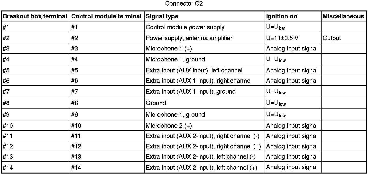 Signal description, Integrated Audio Module (IAM)GeneralAll values below are measured between the relevant terminal in column 1 and C2-8 in column 2 (power ground) unless otherwise stated in parenthesis after the table entry.