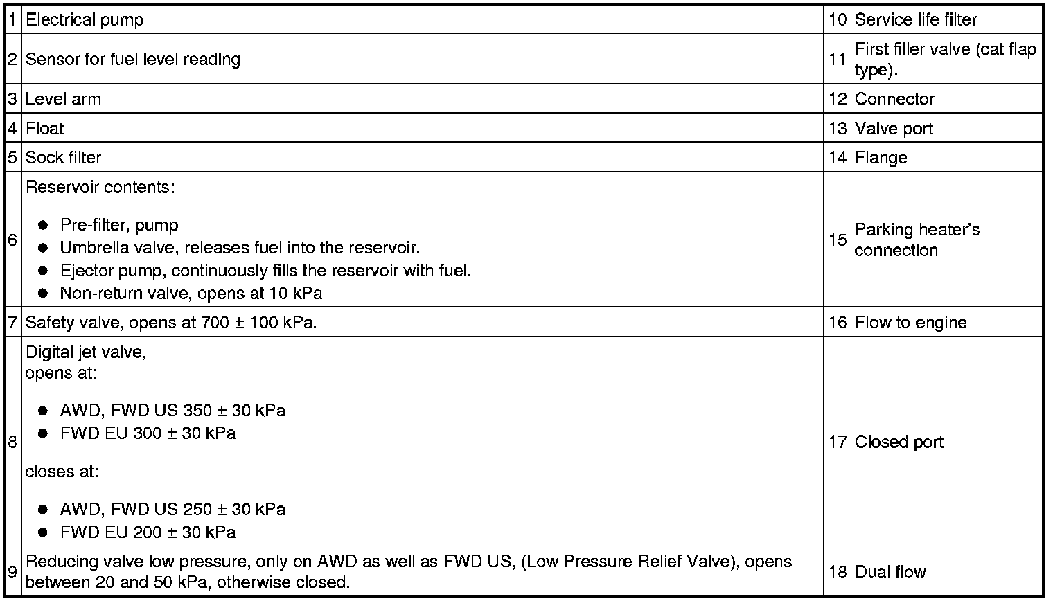 The fuel pump consists of: