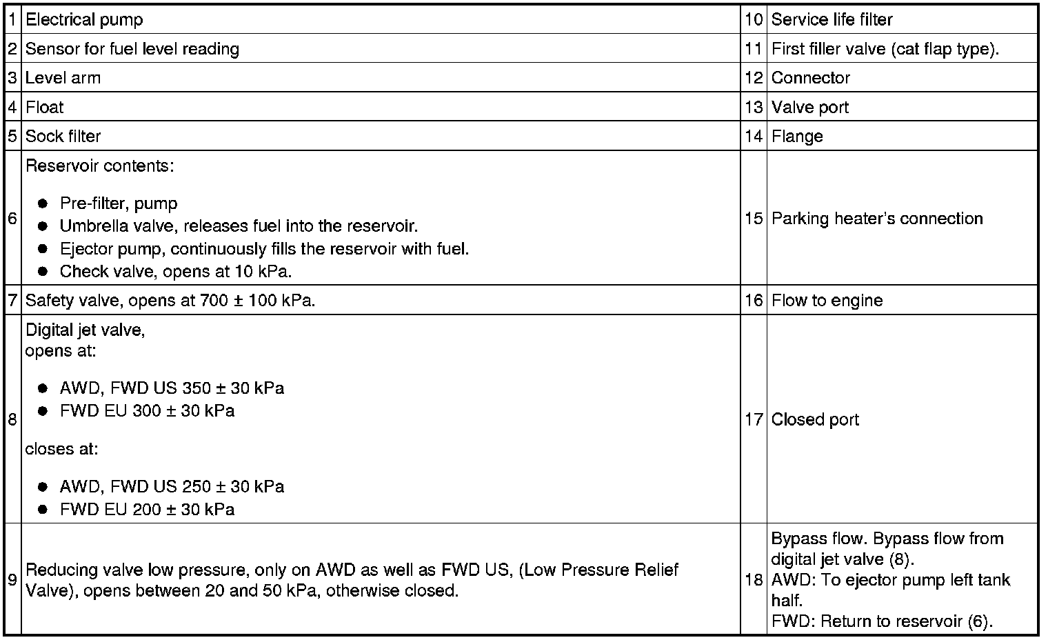 The fuel pump consists of: