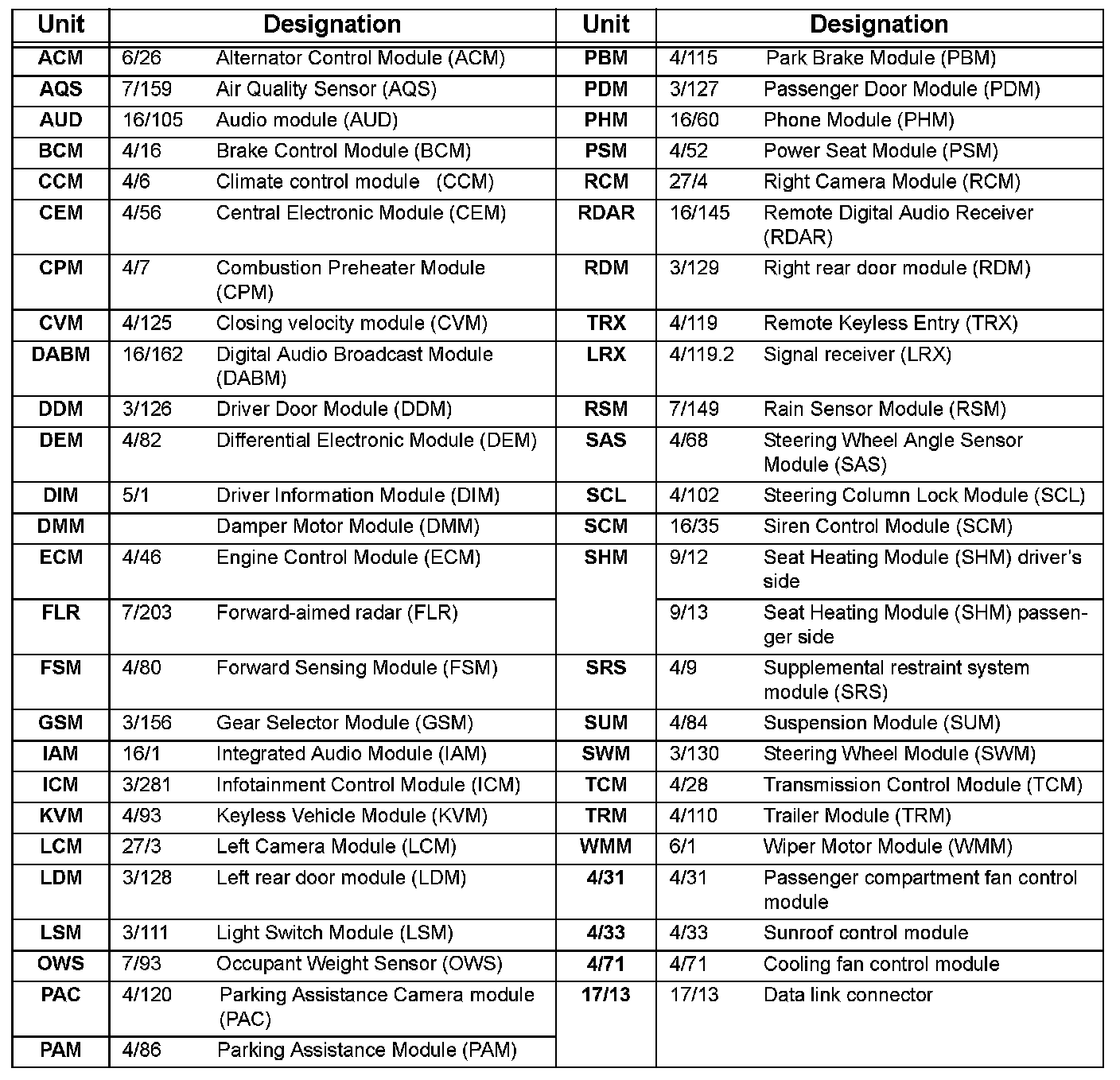Overview designations