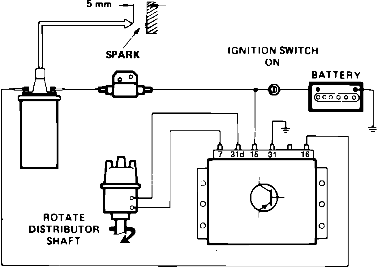 3. Using a suitable high voltage holder, hold wire approximately .196 inch (5 mm) from ground, crank engine and check for spark, Figs. 5 and 6.